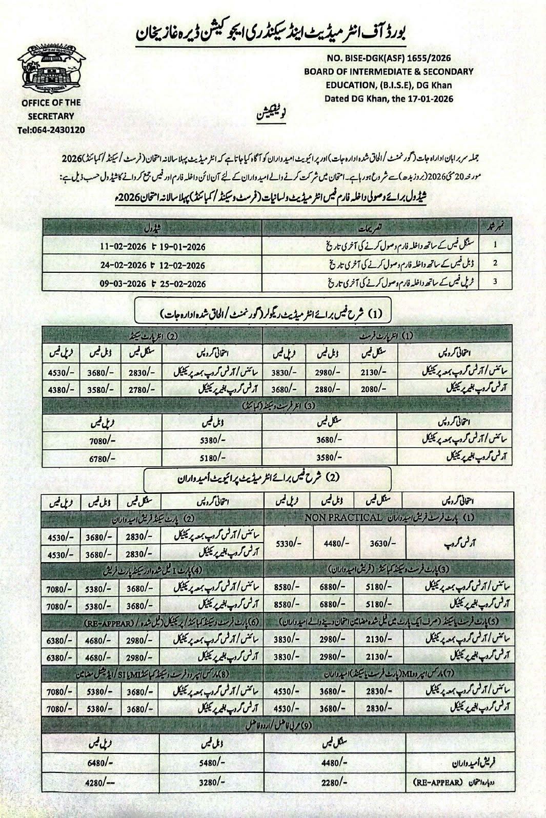 | DG Khan Board Annual Exams 2026 Admission Schedule | Check Schedule |