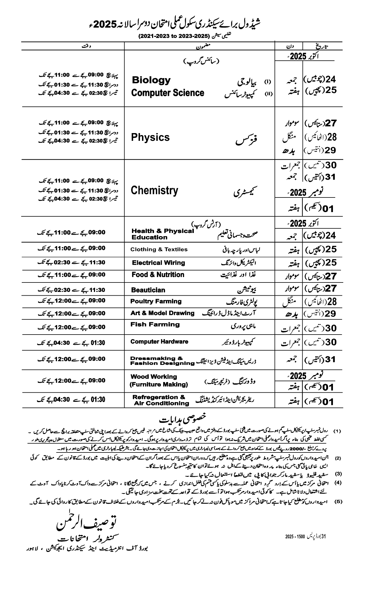 • The 9th class supply date sheet 2025 Lahore board has announce on October, 2025.