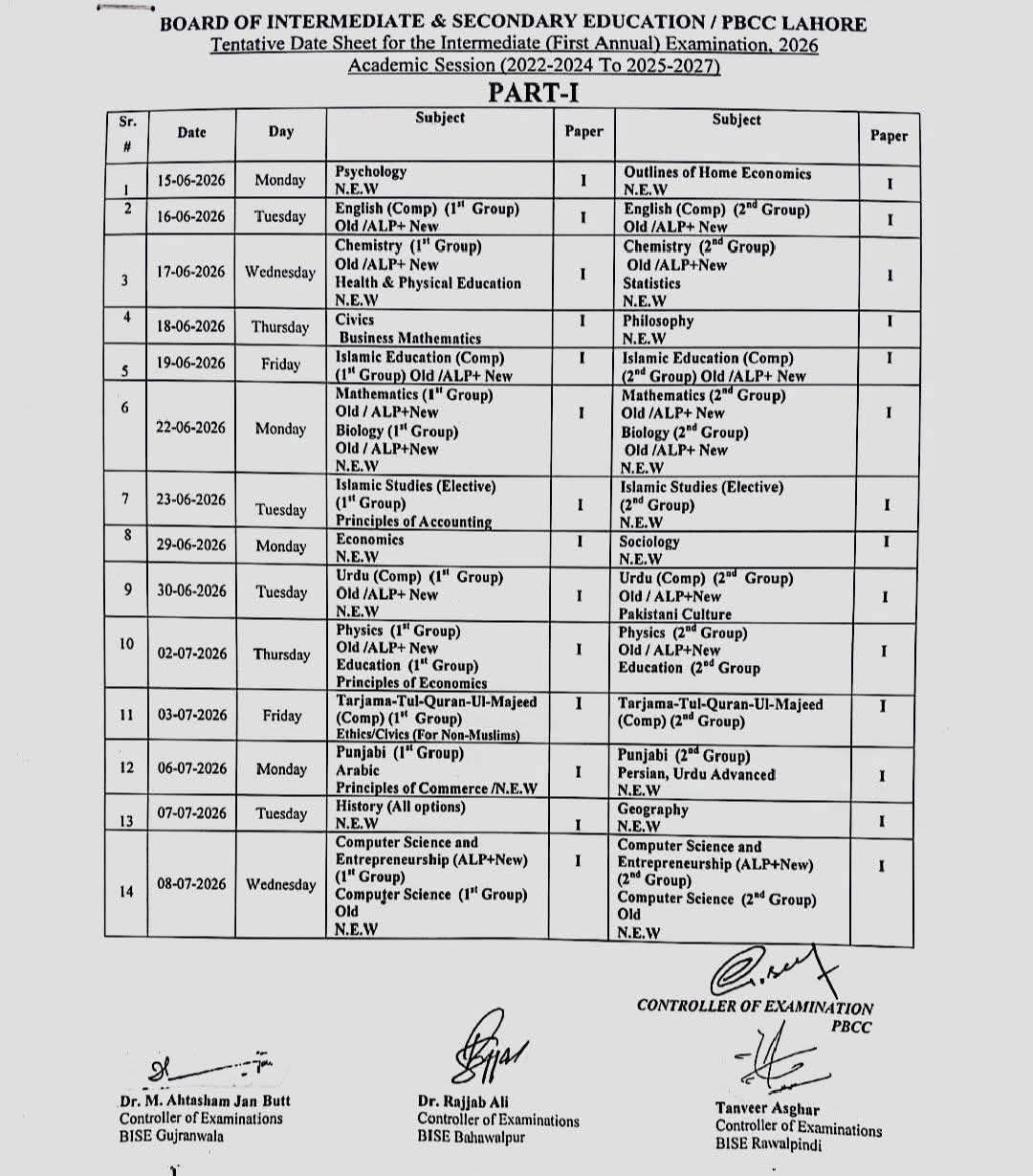 BISE Sargodha Board 11th Class Date Sheet 2026 (Tentative)