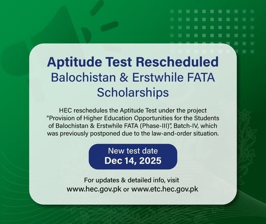 In a significant move to finalize its prestigious scholarship program, the Higher Education Commission (HEC) of Pakistan has officially announced the conduct of a mandatory aptitude test for candidates from Balochistan and the former Federally Administered Tribal Areas (Ex-FATA) . The test, a crucial gateway for the award of scholarships, is scheduled for Sunday, December 14th, 2025 . This test is a critical component of the selection criteria for the special scholarship schemes designed to promote higher education in these historically under-developed regions.