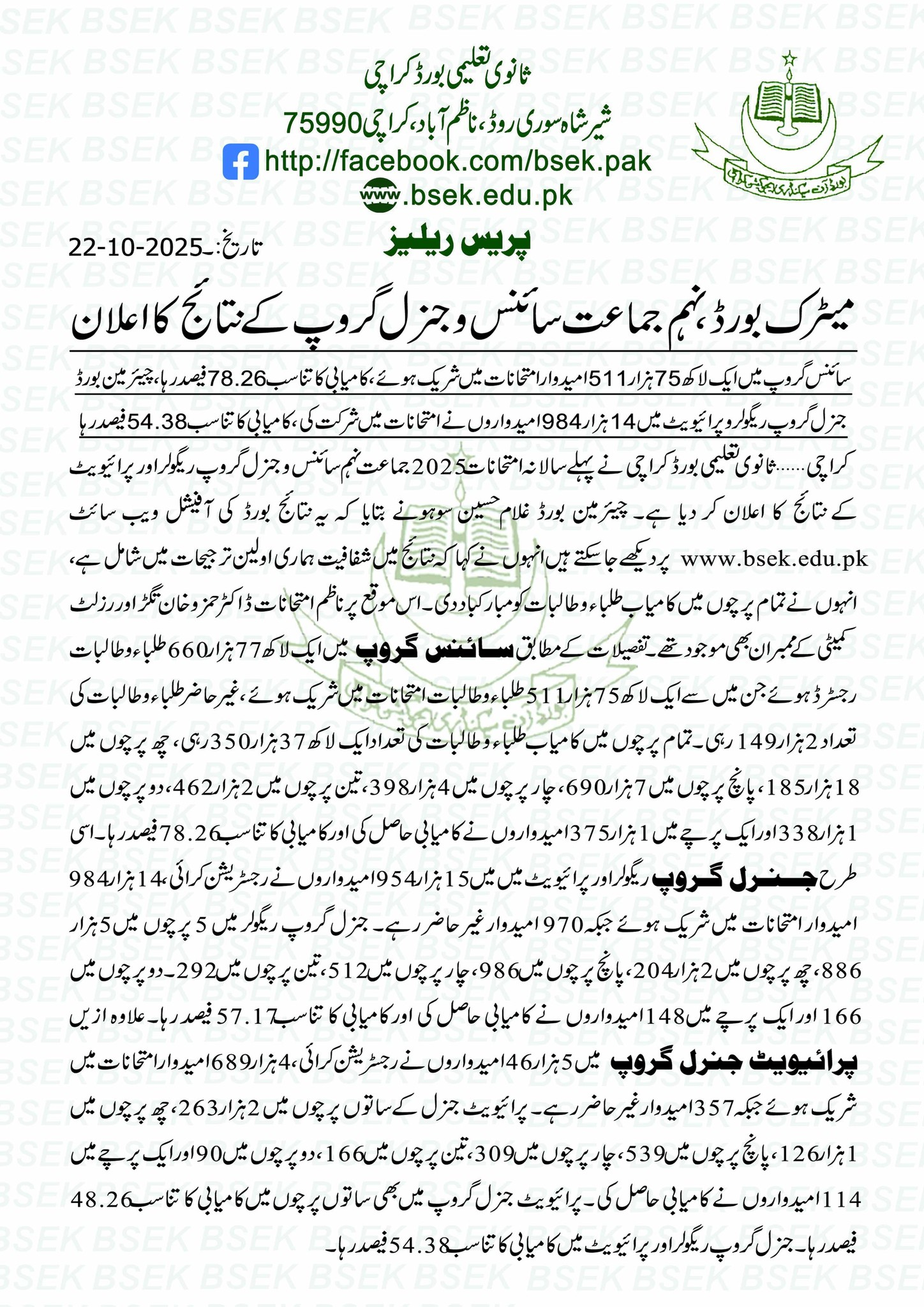 The students of the Karachi Board are informed that the result has been declared in the start of 22th October, 2025 as planned. This is not the official date/time. We have updated you when the Board announced the exact date. So, keep an eye on this portal to get the latest updates on result.