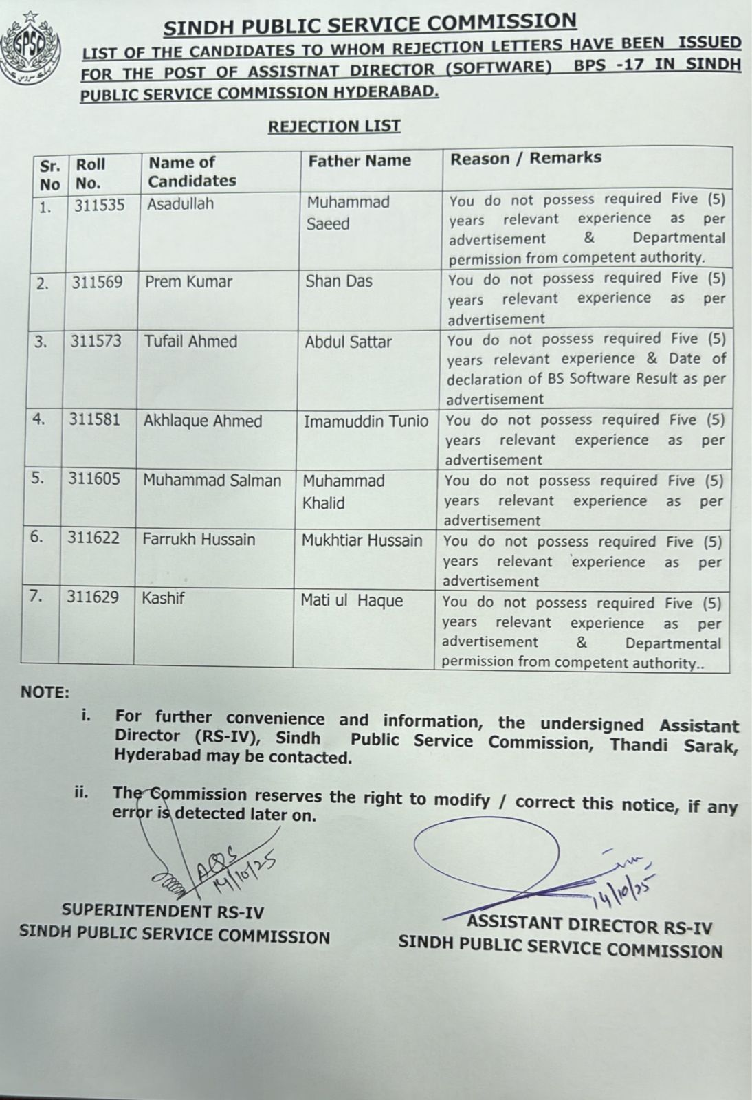 | October 7th, 2025 | Assistant Director Software (BPS-17) | Sindh Public Service Commission | View/Download |
