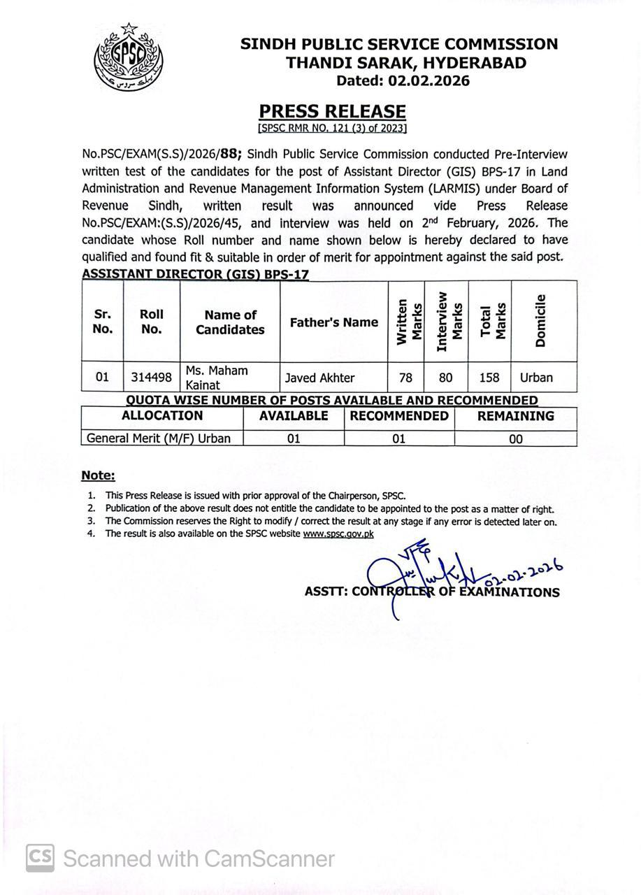 Ans: The candidates can check the SPSC result 2026 by name or roll number through ilmkidunya.com and also from the official web portal of SPSC