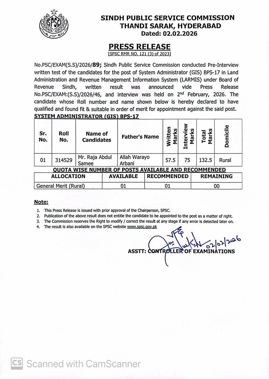 SPSC has announced the Interview Result of various post on February 3rd, 2026 . SPSC has announced the Written Result of various post on February 2nd, 2026. We wish to inform you that the Latest Update has been officially disclosed and is now accessible on this page. Here are essential details regarding the SPSC Result: